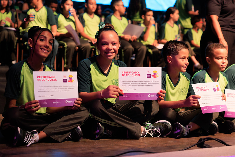 Os estudantes do 5º e 9º ano do ensino fundamental receberam o certificado de encerramento do ano letivo em evento especial. Familiares, professores e dirigentes das escolas participaram das cerimônias no Poliesportivo do Jardim Canadá e também no Teatro Municipal Manoel Franzen de Lima, Centro de Nova Lima.